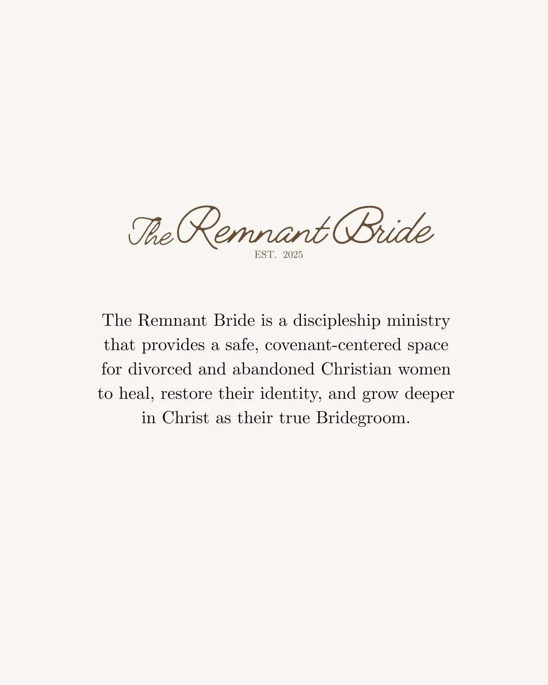 The Remnant Bride is a 7-week Christ-centered spiritual care experience for women healing from marital abandonment, separation, or disruption.